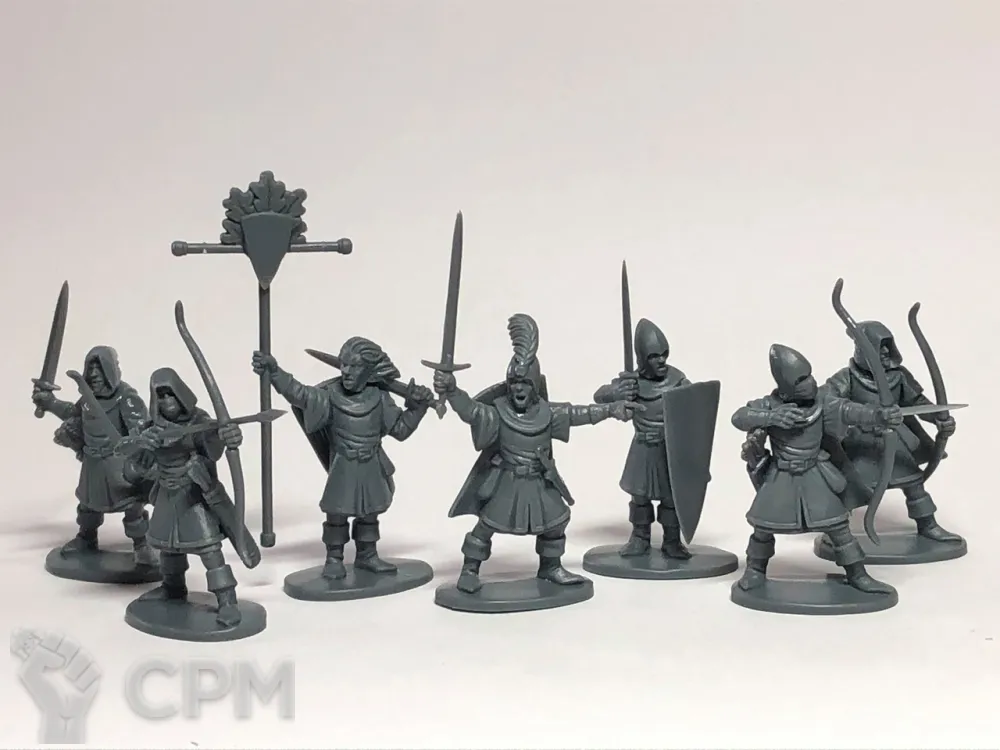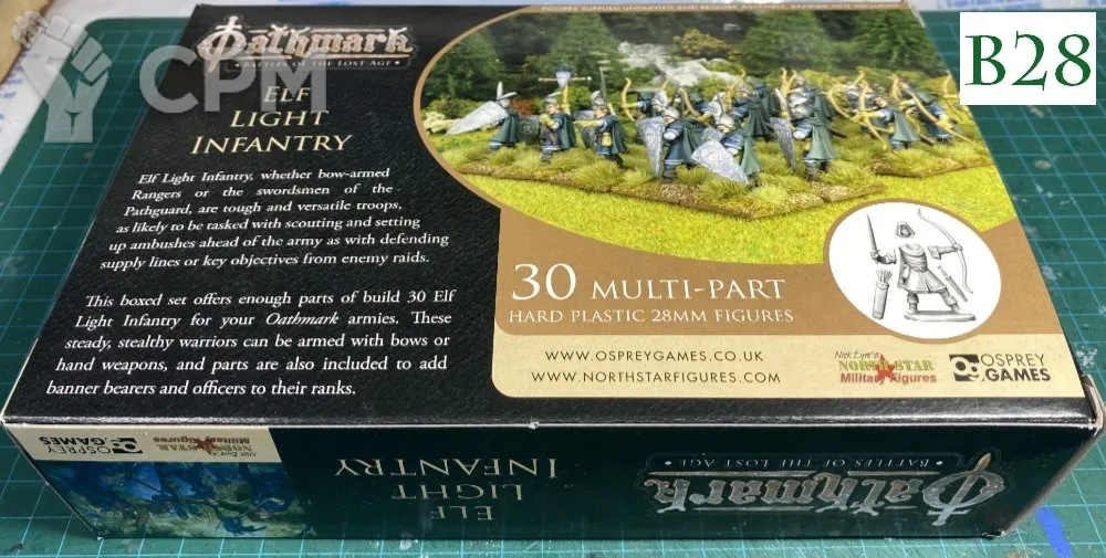 Каждый литник также содержит вариант штандартного носителя и офицера. Таким образом, может быть гигантский отряд из 30 эльфийских солдат с офицером и знаменосцем или шесть отрядов по 5 эльфов со смешанным оружием и штандарт / офицер в каждом отряде!
