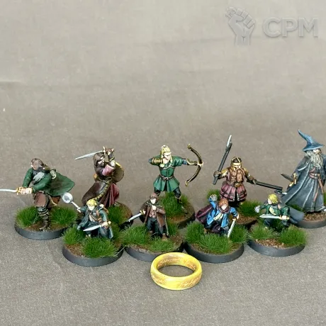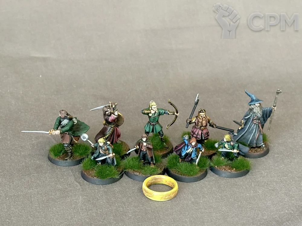 То самое Братство Кольца, когда вышли из Ривенделла. Кольцо Саурона так же в наборе (не кидайте его в пламя!!! это реплика!)