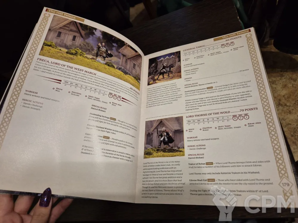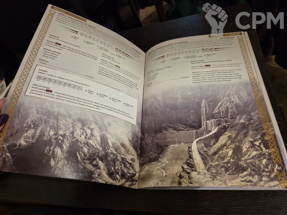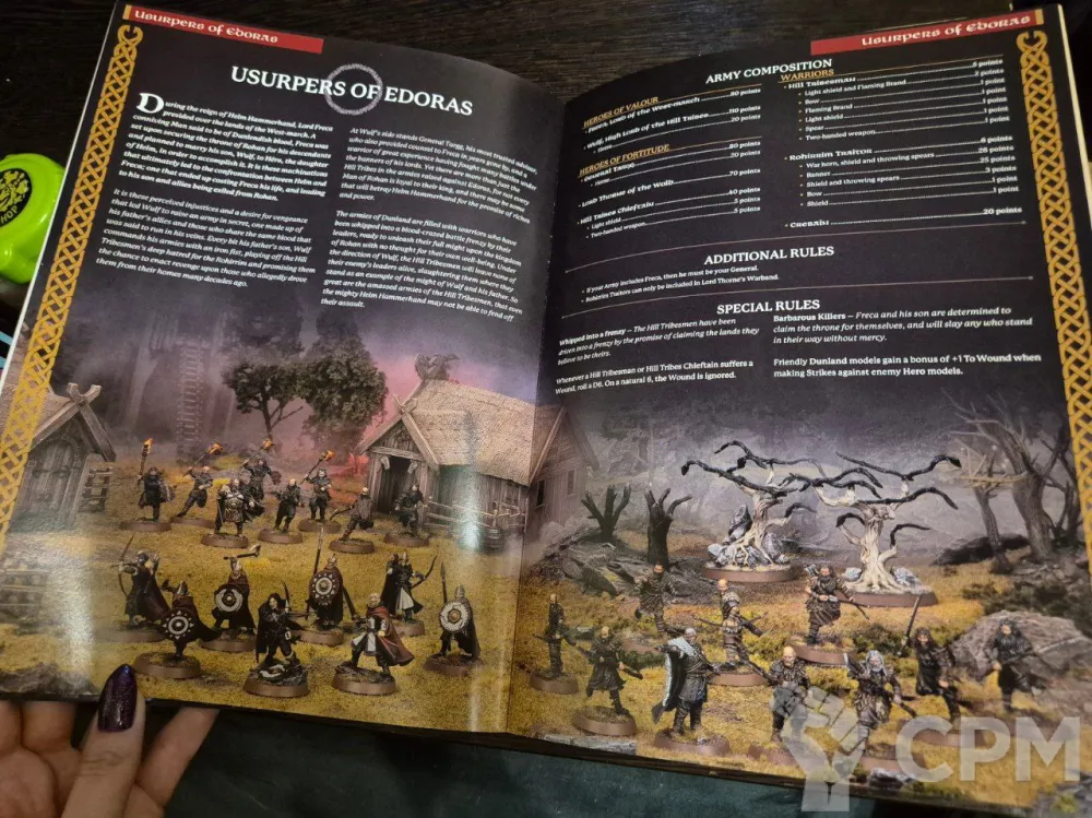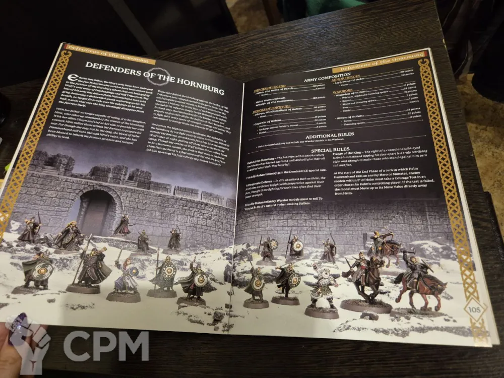 В буклете использовались иллюстрации из книги правил седьмой редакции. Но, главным образом, здесь собраны все профили из арми-листов и сами арми-листы Army of Edoras и Defenders of The Hornburg (для роханской стороны) и Usurpers of Edoras и Besiegers of The Hornburg (для дунландцев). Удобно для игры с новыми армиями для тех, кто не решился покупать всю книгу Armies of The Lord of the Rings.