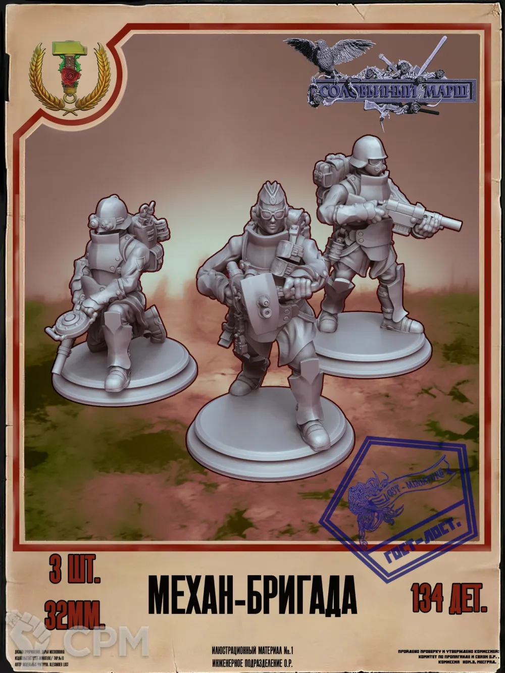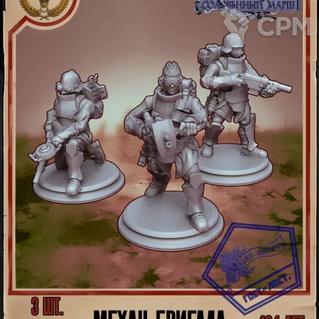 Представляем вашему вниманию набор миниатюр для настольной игры Соловьиный марш "Объединенные: механ-бригада". Этот набор состоит из 3х высококачественных миниатюр, каждая из которых имеет высоту 32 мм. Идеально подходит для игроков, желающих дополнить свою коллекцию и сделать игровое пространство более атмосферным.