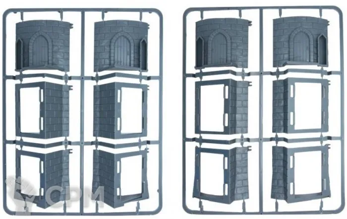 Этот набор предназначен для соединения укрепленных стен настольной мастерской с круглыми башнями для создания замков и городских стен.