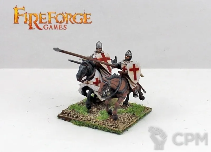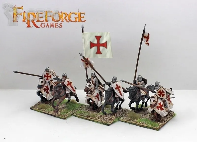 Templar Knights Cavalry 12 конных воинов, 28мм пластик. эта коробка содержит двенадцать 28-миллиметровых пластиковых рыцарей-тамплиеров, состоящих из нескольких частей, а также лошадей с броней и без брони, которые могут быть собраны с различными видами оружия, щитов, голов и аксессуаров. Включает варианты для знаменосца и музыканта.