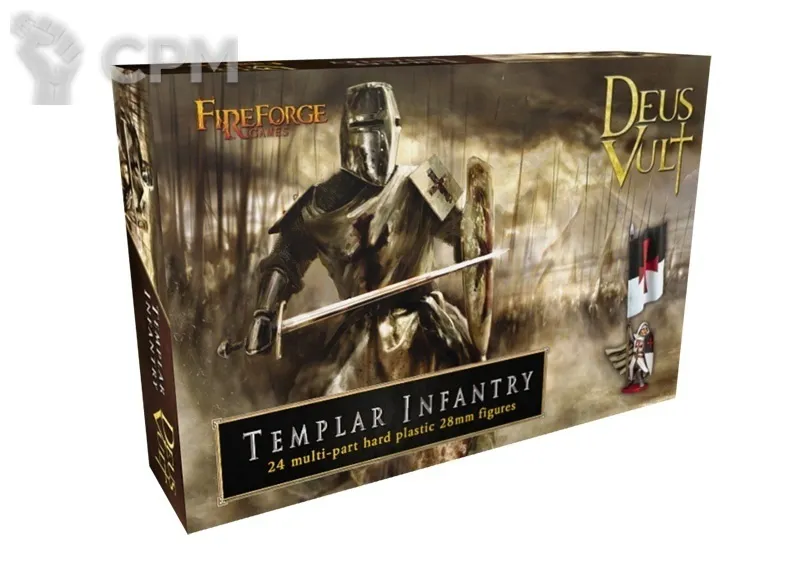 В этой коробке находятся двадцать четыре состоящих из нескольких частей пластмассовых солдат пехоты тамплиеров в тяжелых доспехах XII-XIII веков. Включены несколько вариантов оружия, таких как копья, мечи, топоры, булавы и арбалеты. Вы сможете построить до 12 арбалетчиков и / или до 24 фигурок сержантов тамплиеров.