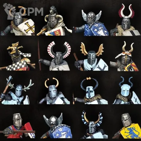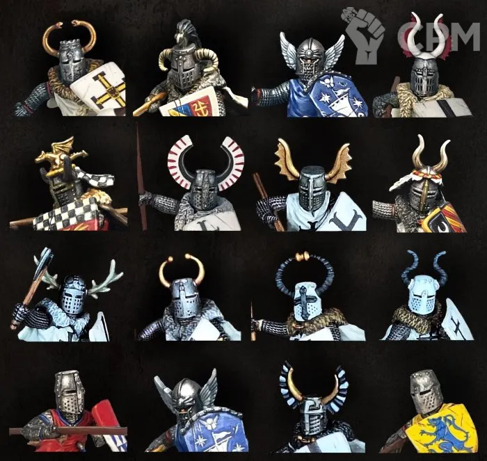 На дизайн этих голов повлияло множество исторических факторов, и многие из них были основаны на существующих образцах шлемов тевтонских рыцарей. Как ни странно, у них были крылья, рога и роговищи на голове! Я сомневаюсь, что исторически они использовались на поле боя из-за своей непрактичности, но, безусловно, использовались для церемониальных целей. Тем не менее, они выглядят очень круто, и ничто не мешает их использовать в тевтонских рыцарях 13-го века, а также в роли неказистых фантастических рыцарей.