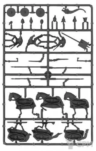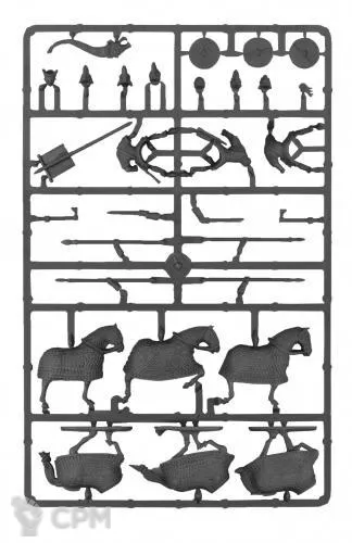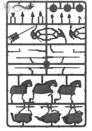 Внутри вы найдете детали для сборки 3 тщательно проработанных бронированных кавалеристов, сражающихся копьем, мечом или топором. Эти фигурки станут отличным украшением вашей армии готов или союзников поздних римлян (При замене голов, получаются римские катафракты).