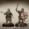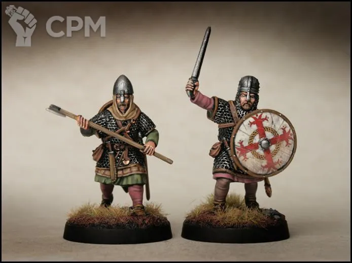 Набор Huscarls представляет элиту саксонских воинов. Вооруженные кольчугой, набором шлемов, они несут двуручный датский топор или могут использовать копье. Вы также можете использовать двуручные топоры в некоторых положениях тела на рамке саксонских воинов, тем самым увеличивая разнообразие ваших фигур Хускарлов.