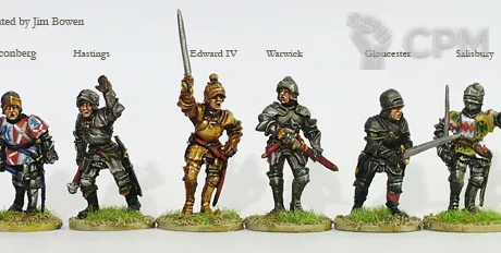 Yorkist command and Warwick on foot (Edward IV, Warwick, Fauconberg, Hastings, Gloucester and Salisbury) Команда йоркистов и пеший Уорик (Эдвард IV, Уорик, Фоконберг, Гастингс, Глостер и Солсбери)