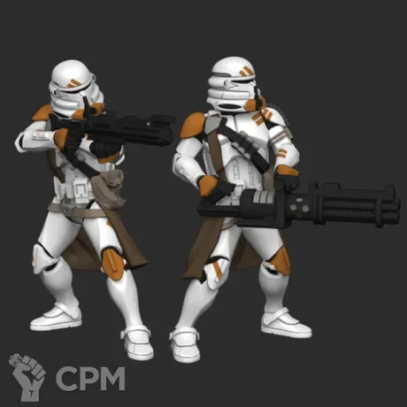 Комплект из 2 моделей Republic Airborne Specialists. Отлично подойдет для настольной игры / варгейма Star Wars Legion. Модели не покрашены. Подставки в комплект не входят, но их можно докупить отдельно.