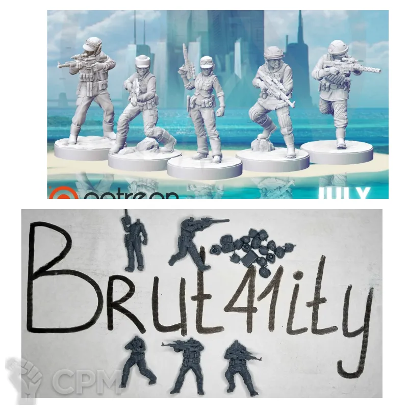Выиграл на аукционе отряд касркин из 14 моделей. Качество печати отличное, со следами поддержек, как и было заявлено в описании аукциона. При отправлении упаковали как иглу Кощея: каждая модель в отдельном пакете, отдельный пакет в отдельной пупырке, отдельная пупырка в общей пупырке, общая пупырка в коробке (коробка в зайце, заяц в соколе и т.д.). Все пришло небитым, некрашеным. Будете покупать или выиграете на ауке, докупите сразу базы.
