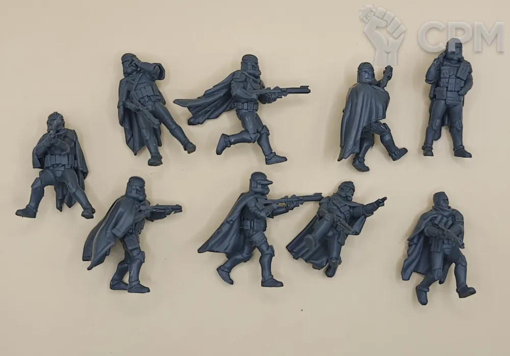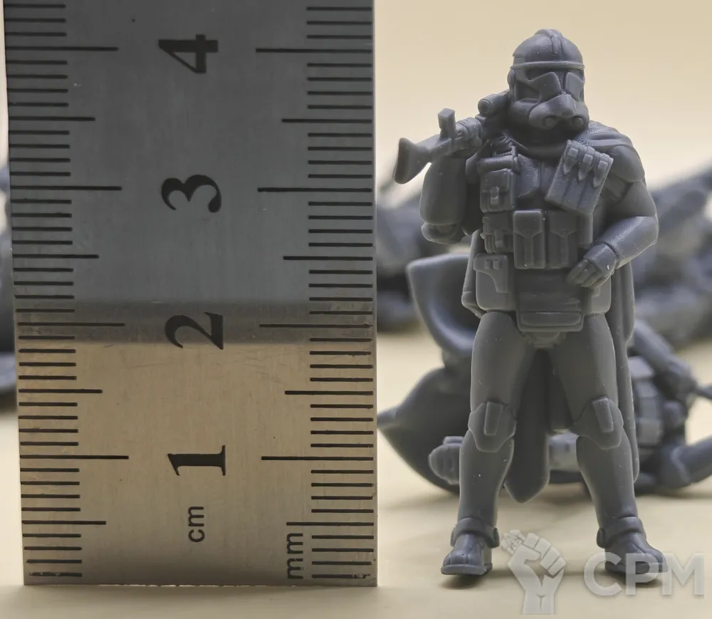По отряду имперской армии: отряд отлично детализирован и пропечатаны все мелкие детали но есть два небольших косяка у одной миниатюры поддержка напечатана прямо на лице, и есть косяк в печати плаща.