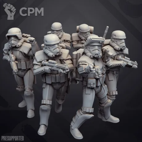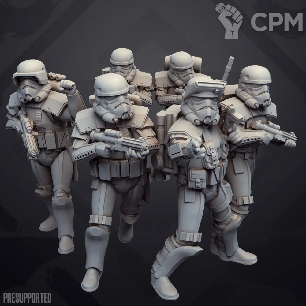 По отряду имперской армии: отряд отлично детализирован и пропечатаны все мелкие детали но есть два небольших косяка у одной миниатюры поддержка напечатана прямо на лице, и есть косяк в печати плаща.