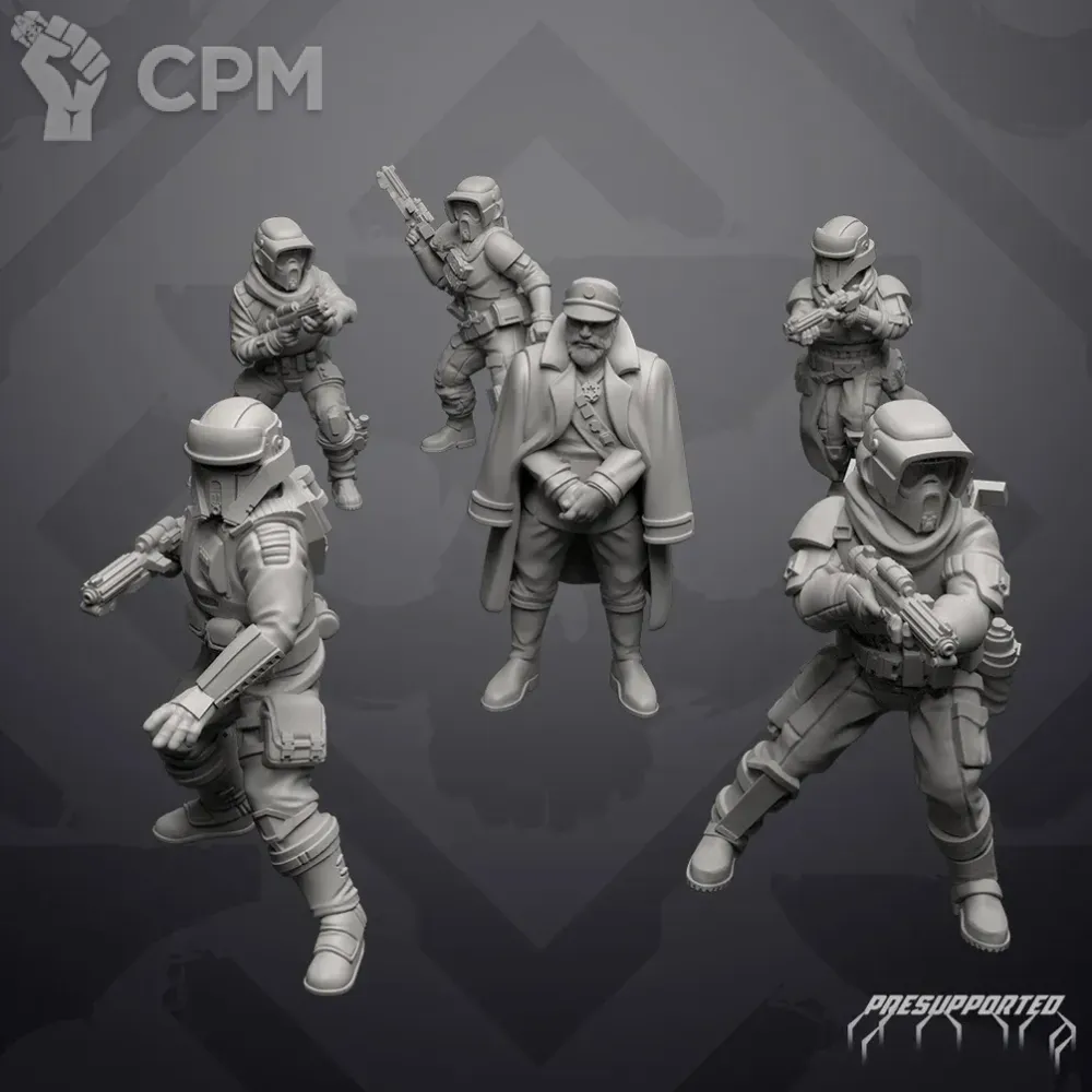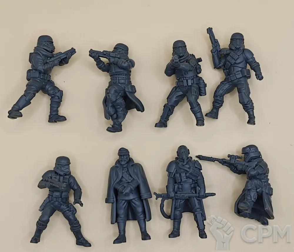 По отряду имперской армии: отряд отлично детализирован и пропечатаны все мелкие детали но есть два небольших косяка у одной миниатюры поддержка напечатана прямо на лице, и есть косяк в печати плаща.