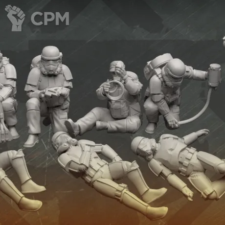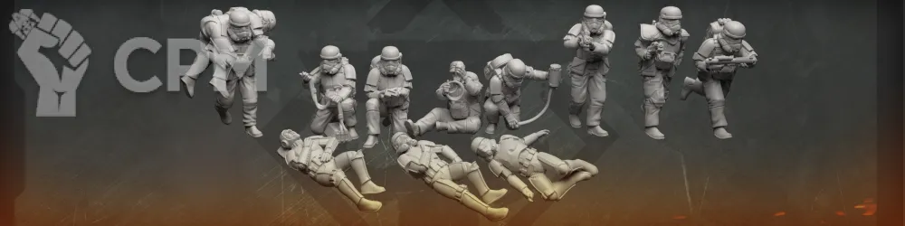 По отряду имперской армии: отряд отлично детализирован и пропечатаны все мелкие детали но есть два небольших косяка у одной миниатюры поддержка напечатана прямо на лице, и есть косяк в печати плаща.