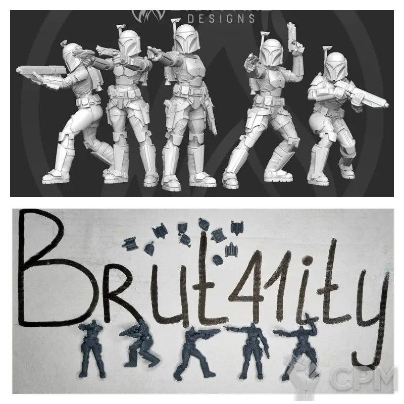Выиграл на аукционе отряд касркин из 14 моделей. Качество печати отличное, со следами поддержек, как и было заявлено в описании аукциона. При отправлении упаковали как иглу Кощея: каждая модель в отдельном пакете, отдельный пакет в отдельной пупырке, отдельная пупырка в общей пупырке, общая пупырка в коробке (коробка в зайце, заяц в соколе и т.д.). Все пришло небитым, некрашеным. Будете покупать или выиграете на ауке, докупите сразу базы.
