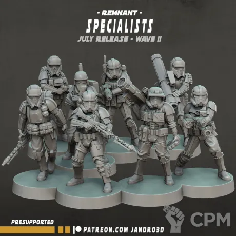 Миниатюры напечатаны на 12k 3д принтере с толщиной слоя в 0.02 мм смолой elegoo. В комплекте детали для сборки 8 миниатюр без баз. Комплект как представлено на фото, возможна печать дополнительных миниатюр или битсов.