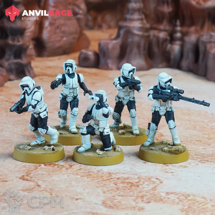 SW Legion,SCOUTS . В отряде 10 шт. 32мм., модели изготовлены на фотополимерном 3д принтере, отмыты и засвечены. Продаются в разобранном виде , подставки из PETG пластика напечатанные на FDM в комплекте!