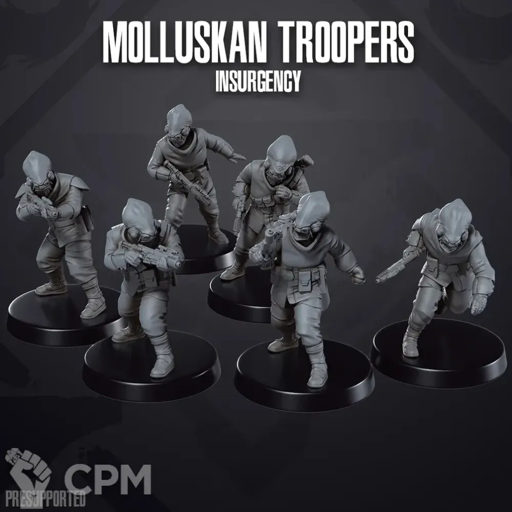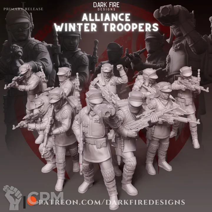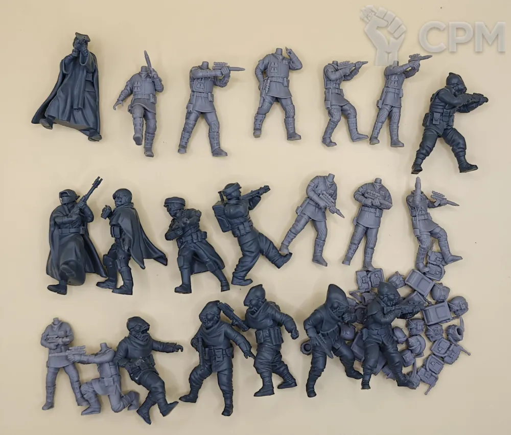 Миниатюры напечатаны на 12k 3д принтере с толщиной слоя в 0.02 мм. В комплекте детали для сборки миниатюр. База в комплект не входит. Возможна печать дополнительных миниатюр или битсов.
