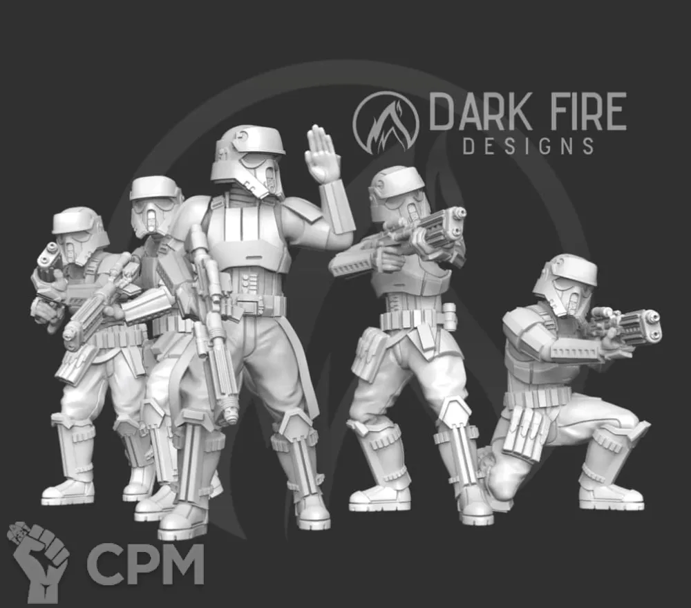 По отряду имперской армии: отряд отлично детализирован и пропечатаны все мелкие детали но есть два небольших косяка у одной миниатюры поддержка напечатана прямо на лице, и есть косяк в печати плаща.