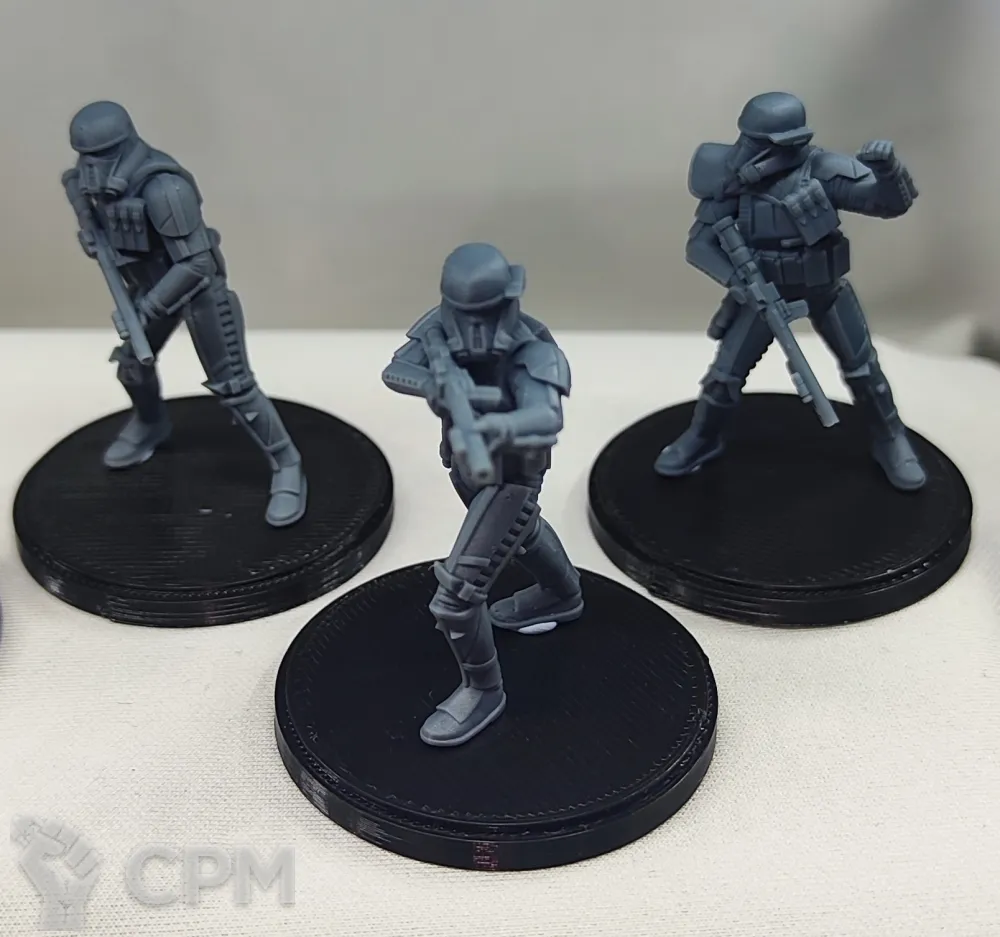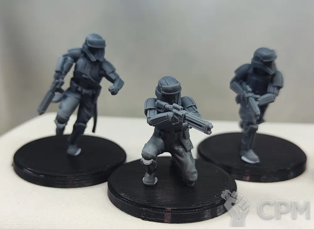 Миниатюры напечатаны прочной смолой на принтере с высоким разрешением. К каждой миниатюре, бонусом, в комплекте идет пластиковая база под форм фактор модели.