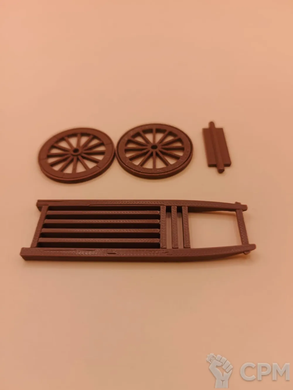 Комплект: 4 элемента (2 колеса, соединение колес, площадка для груза)