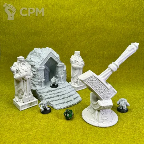 В наборе 4 элемента: вход в шахты, 2 статуи дварфов и монумент "Молот дварфов"