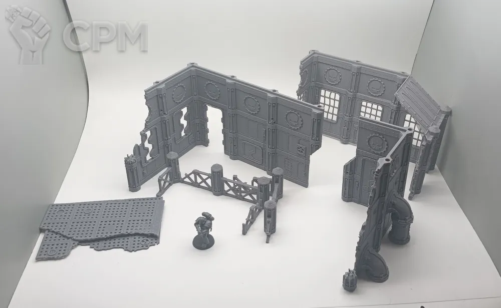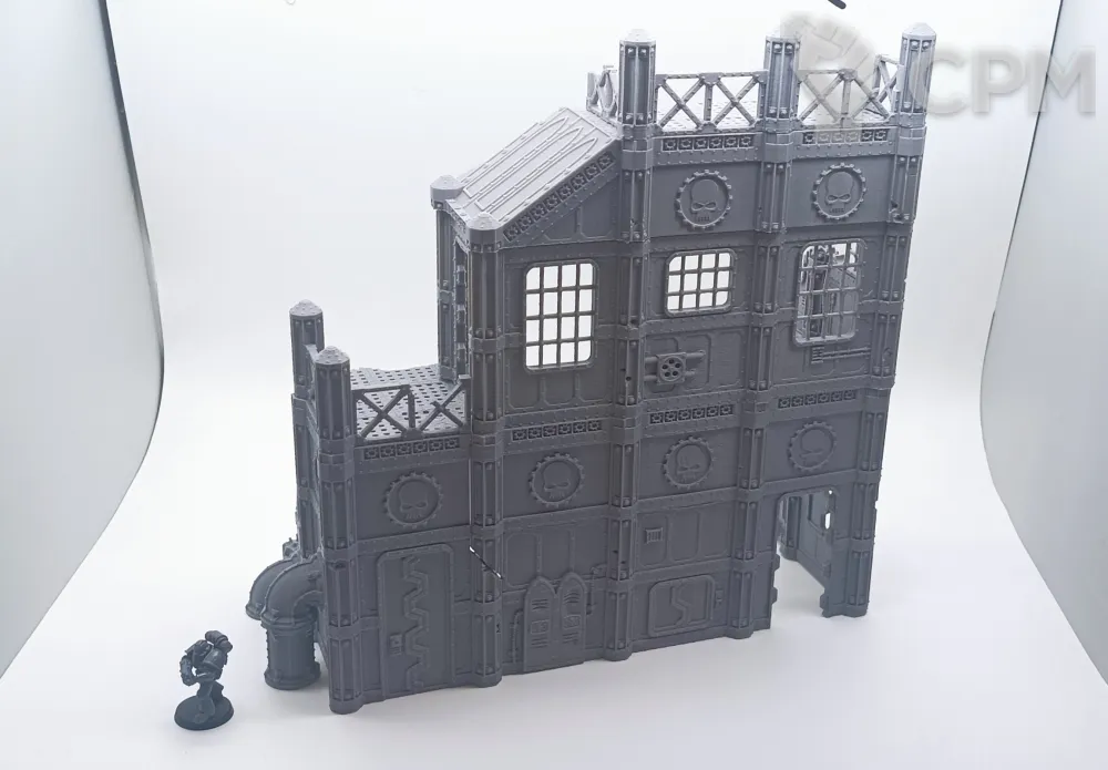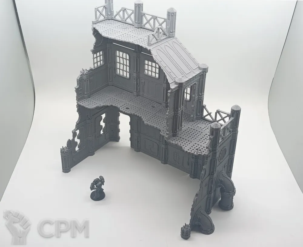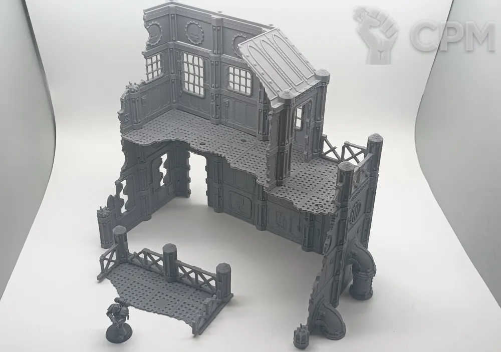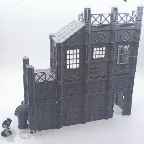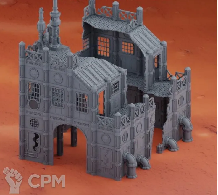 Задняя часть большого завода. Для удобства обе части продаются отдельно, так как являются полностью самостоятельными элементами террейна, и могут использоваться как одно большое здание, или несколько руин. На последнем фото изображен завод с обоими частями. Сборка на коннекторах или клеем.