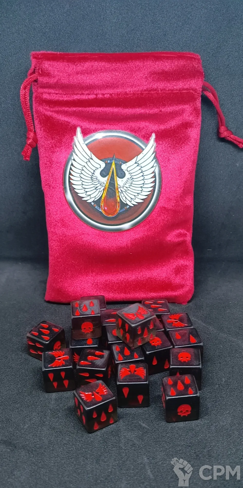 Кубы Кровавых Ангелов, 20 штук, мешочек в комплекте, упаковка zip-lock у кубов и мешочка.