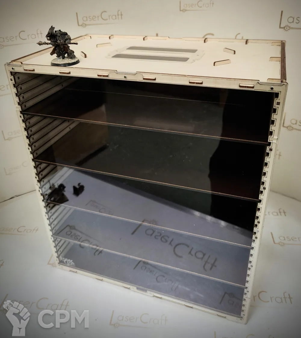 Переноска понравилась. Оптимальнее хранилища я пока не нашел в продаже. Используется почти вся площадь и объем (в отличии от мягких треев-ложементов). Из мелких недостатков - древесная пыль (очень мало) будет отшелушиваться при частом использовании (трении полок) и оседать на миниатюрах. Так что лакируйте свои миниатюры или не красьте вообще). Хоть товар позиционируется как "переноска", я бы ее так не называл, т.к. очень тяжелая. Это скорее стационарный домашний короб для хранения. Вобщем, заказываю еще два) Спасибо за вашу продукцию!