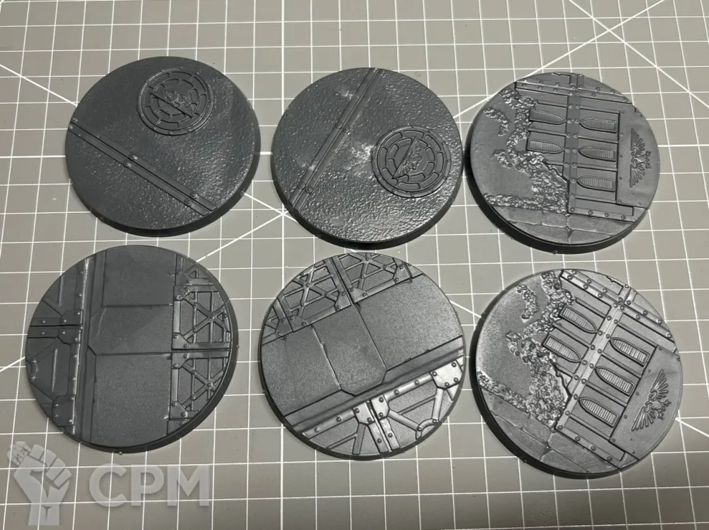6 оригинальных овальных баз Sector Imperialis 60 мм (такой размеры им GW приписывает - на самом деле они 65мм). На одной из них немного размазан суперклей, ничего что не поправит текстурная краска. Продаются только полным лотом