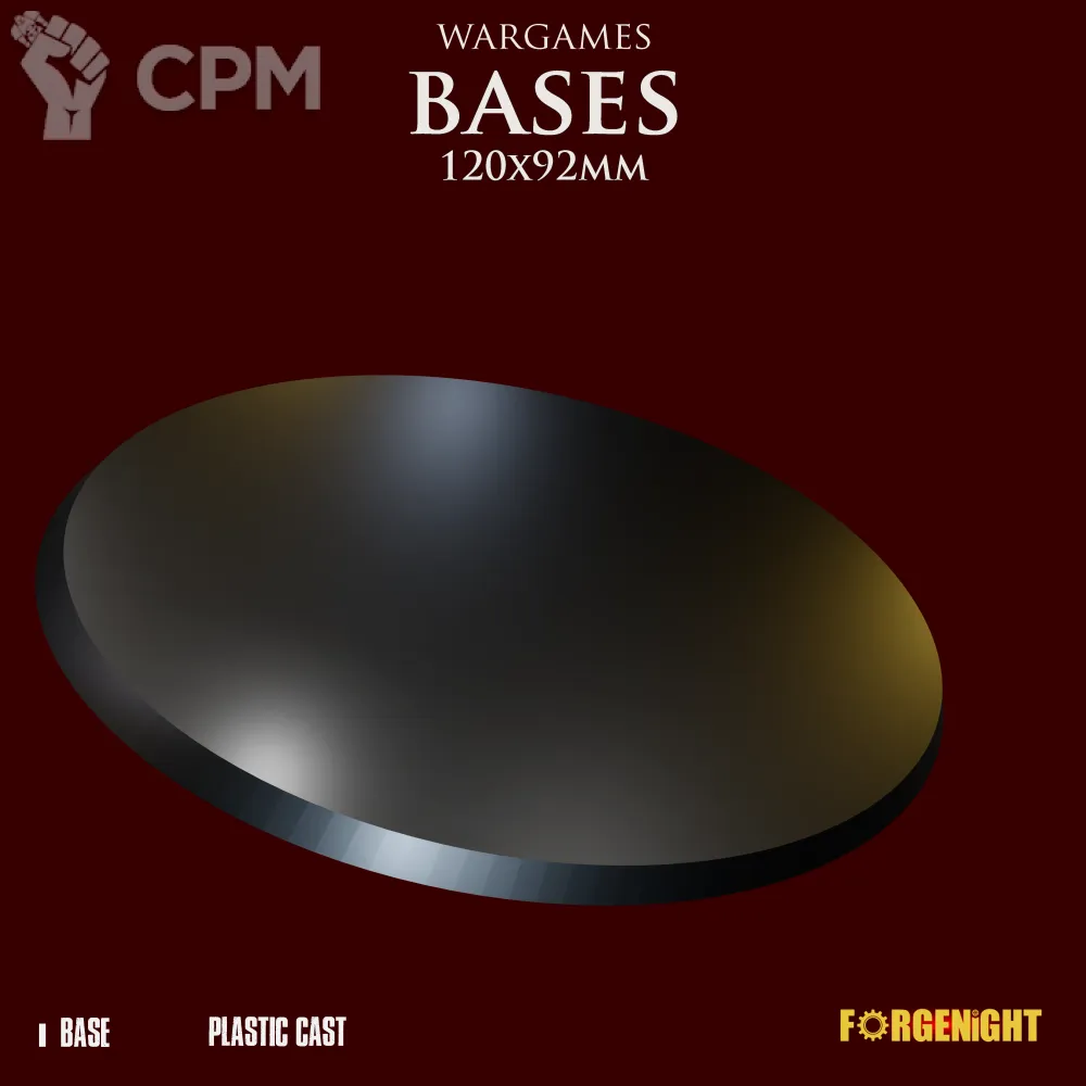 Эта овальная база 120×92 мм — платформа для титанов войны, исполинов плоти и стали, чьё присутствие ломает строй и волю противника.