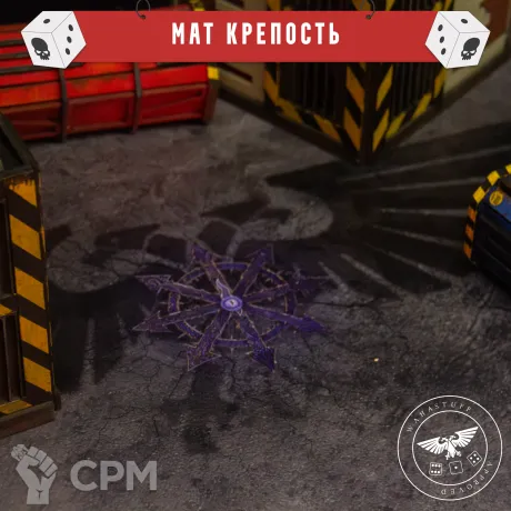 Мат для Варгеймов 60x44 дюйма "Крепость” представляет из себя часть улиц города улья с дорогами. На нем находится аквила, знак хаоса и дороги. Мат может пахнуть 1-2 дня, однако потом мат не пахнет.
