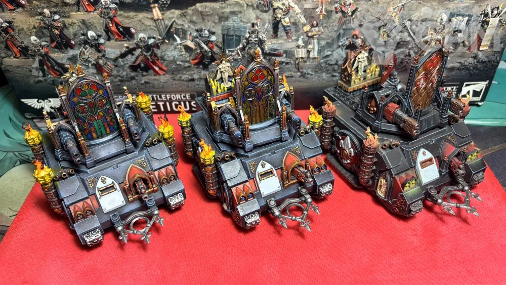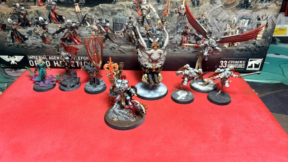 Большая армия Сестер битвы. 90% армии оригинал пластик, оставшиеся 10% 3д печать ( пачка парагонш, 10 сакресанток, 3 канонессы на джамппаках) и литье ( недокрашенные сёстры с ММ, 5 сестёр с флеймерами и 10 репентий от артели "W")
