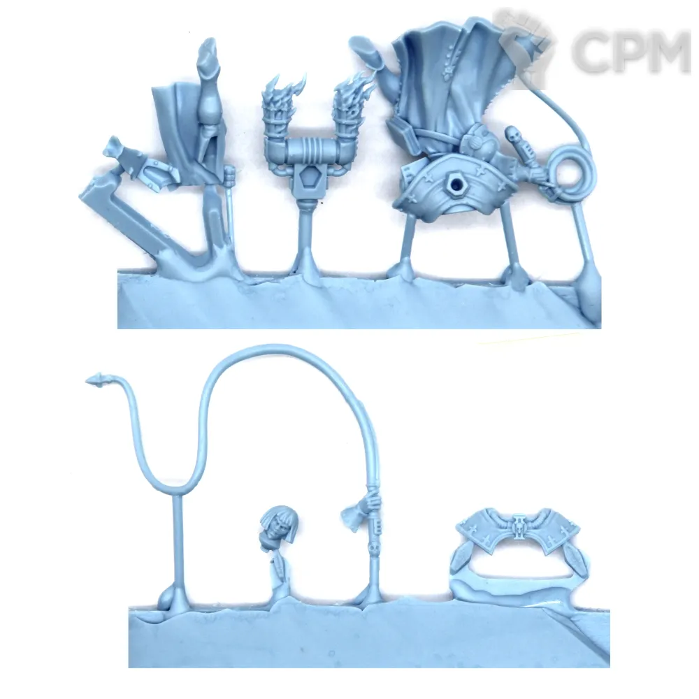 Но зачем-то потом какому-то неумехе поручили обработать швы. И это кошмар. Швы зачищены лишь частично, что лишь усложняет обработку миниатюр. Вдобавок человек совершенно не представляет что и зачем делает. Очень много срезано лишнего, кое-где запорота детализация, придётся много работать с зелёнкой.