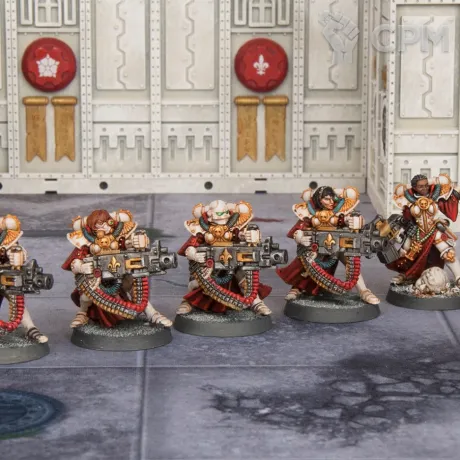 Ретрибуторки — это хуманийская версия «тяжёлой огневой поддержки», только выглядит она так, будто четырём девкам выдали огромные пушки и сказали: «Ну давайте, разберитесь как-нибудь сами». И они разобрались — криво, громко и с таким пафосом, что даже сервиторы смеются. Каждая из них тащит орудие, которое больше похоже на переносную кузницу, чем на нормальную даку. Лас-каноны, тяжёлые болтеры, мульти-мельты — всё это они держат так, будто сейчас уронят или нечаянно выстрелят себе под ноги.