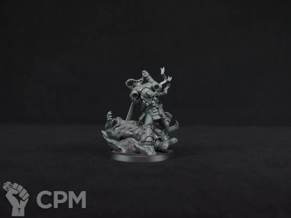 Собранный лимитированный Чемпион Императора Чёрных Храмовников. Все детали были хорошо зачищены от облоя и собирались на клее Citadel Plastic Glue.