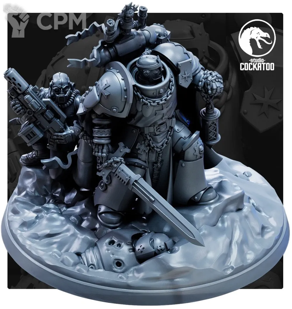 Печать сделана на УРА, всё подстраивается под ваше удобство! За черепа для подставки отдельное спасибо, сорк в терминаторской броне выглядит ещё грознее!