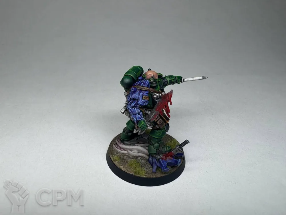 При работе использованы краски Citadel, Vallejo, Gunze и различные эффекты типа Streaking Grime, жидких пигментов и прочьего. Покрыто лаком Mr. Hobby TopCoat - хорошо ровняет цвет и неплохо защищает.