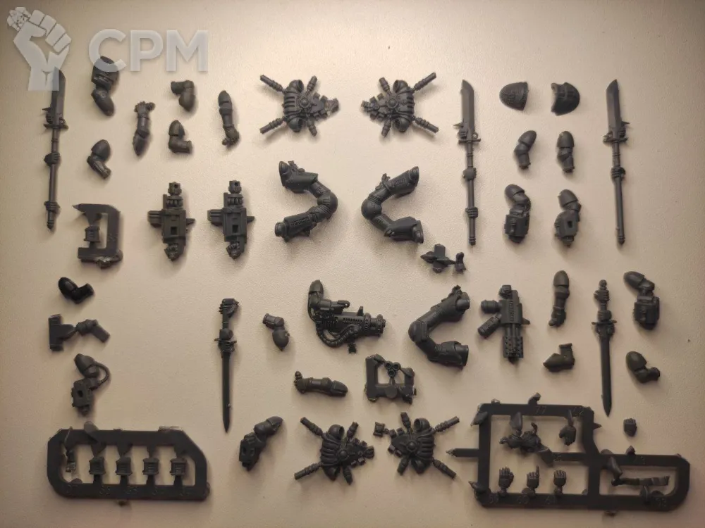 Оригинальный набор Серых Рыцарей. Срезан с литников, но почти в полном составе. Для подтверждения постарался разложить детали прям как на литниках.