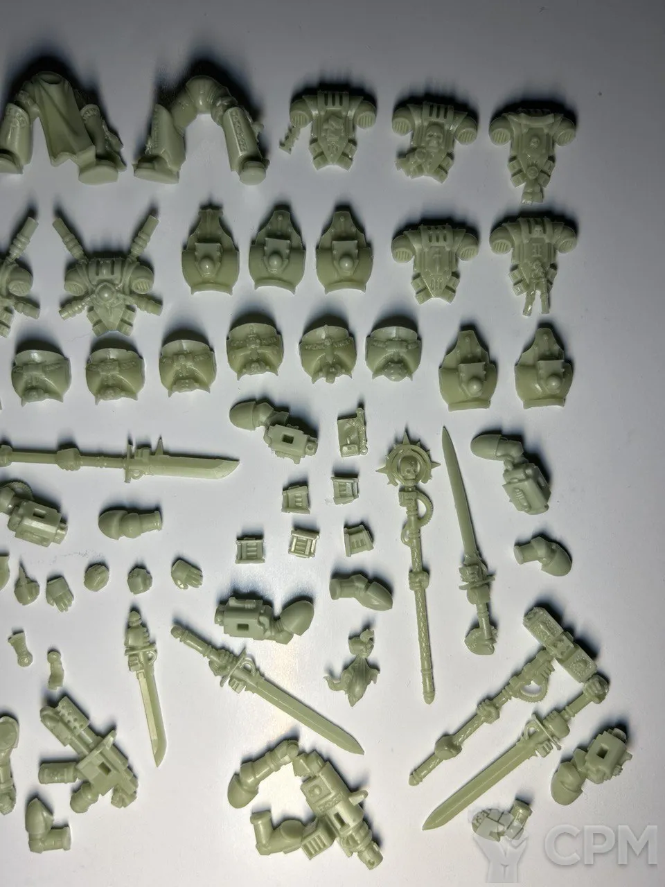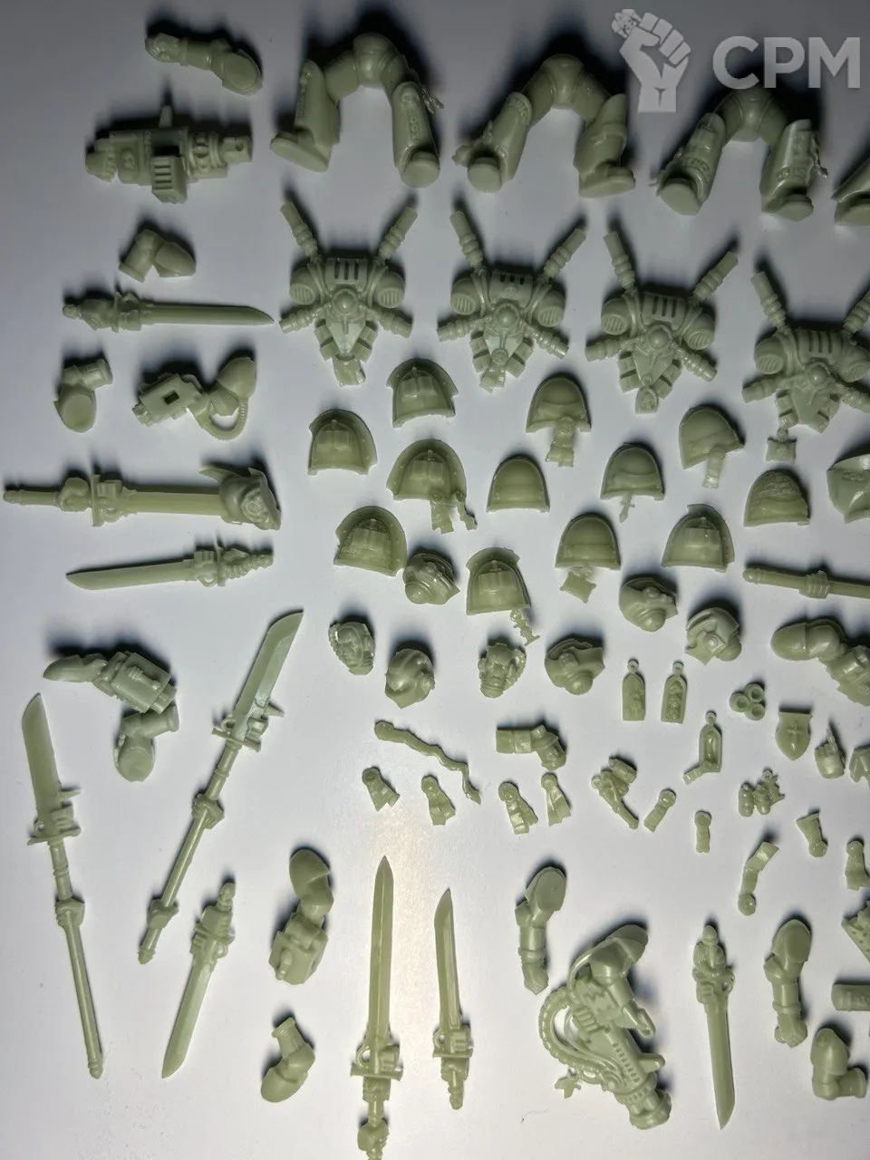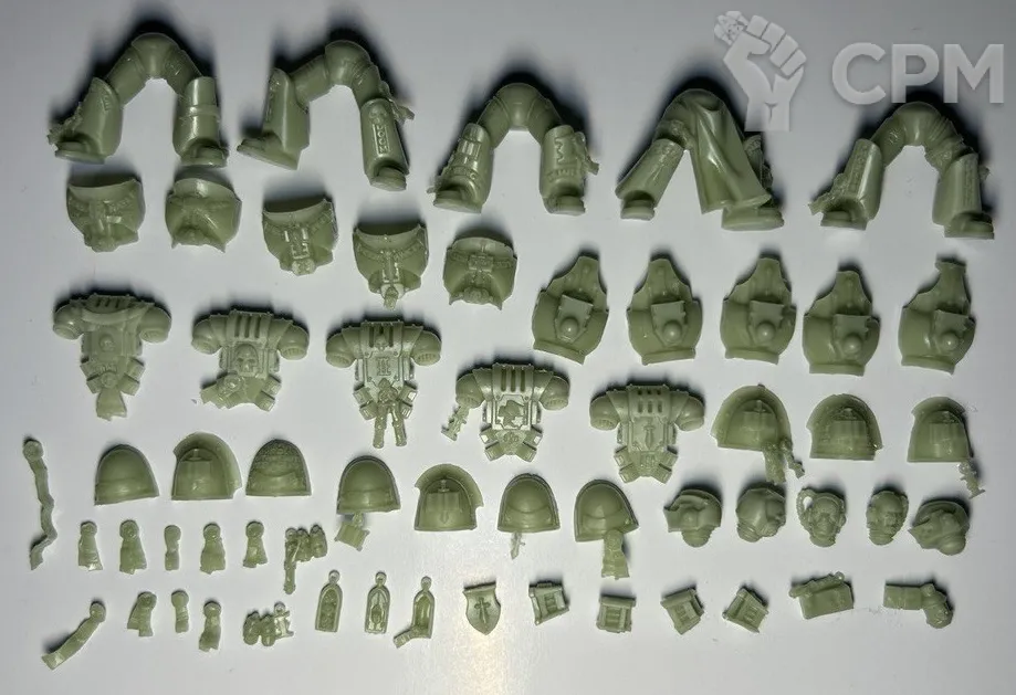Качество литья весьма уважаемое, материал непривычного зеленоватого цвета но для работы комфортный, классические смещения присутствуют но совсем небольшие, поддержки на литье уже счищены да и облоя почти нет. Плюс продавец подкинул пару мелочей для оформления баз что приятно.
