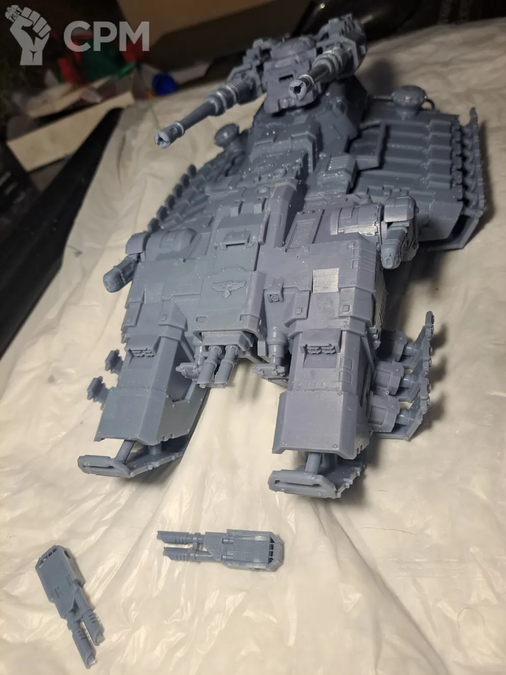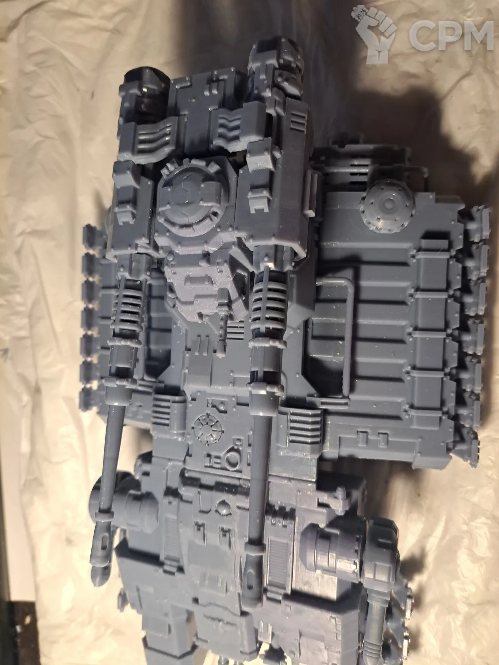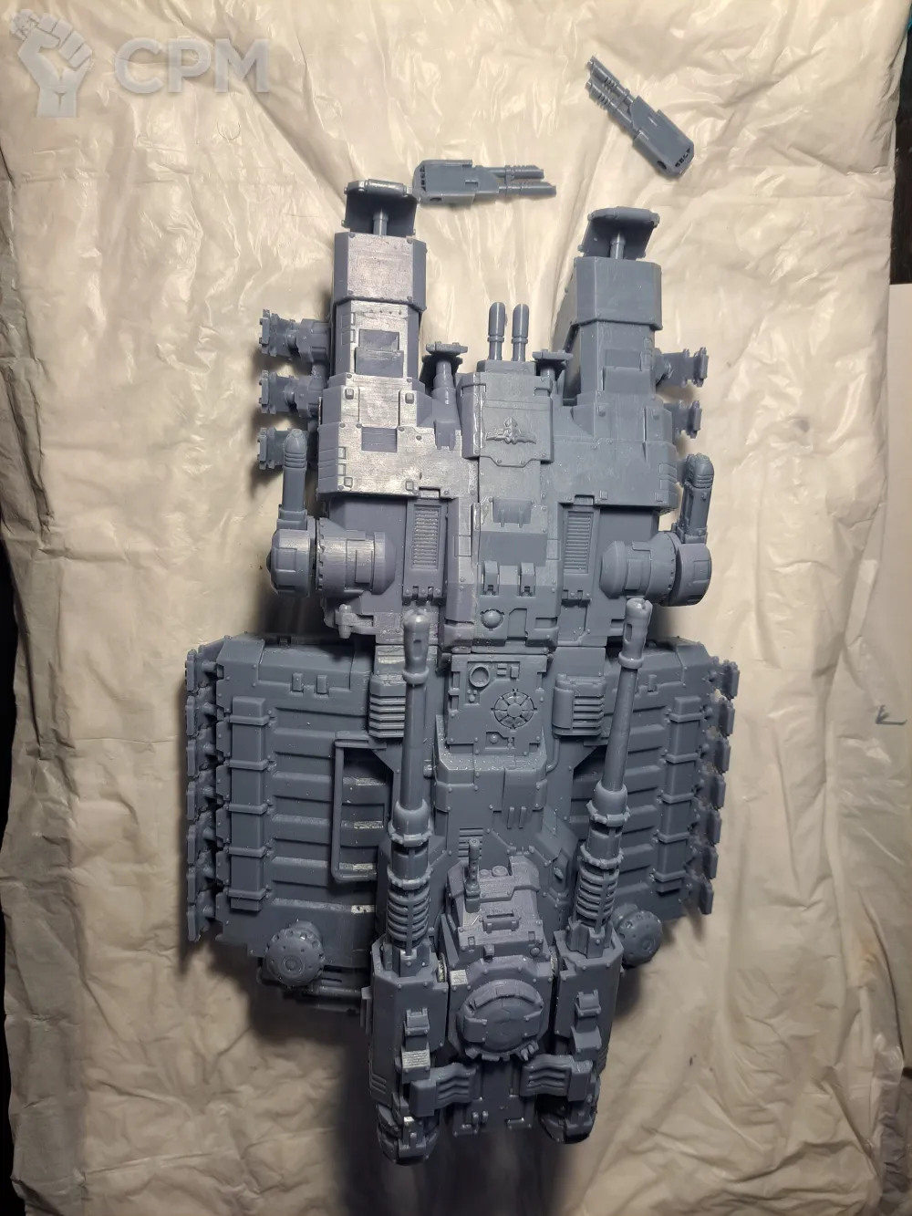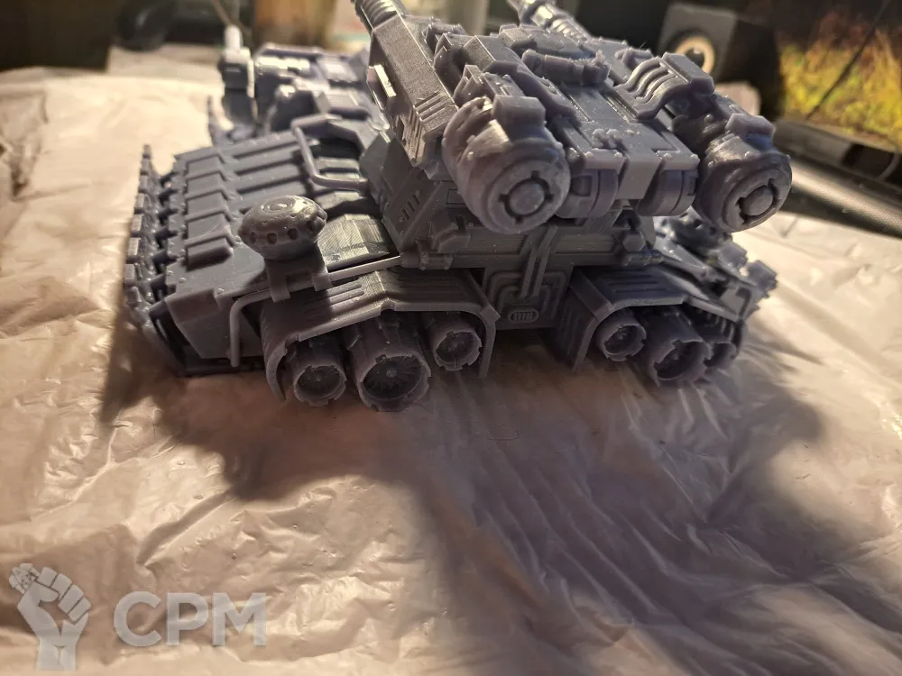 Качество печати на 3+. Есть мелкие наплывы по корпусу, кривое дуло заднего пулемета и сильно оплывшая задняя аппарель. Чтобы вставить боковые заглушки и люки их пришлось СИЛЬНО допиливать напильником (ибо часть "папа" сильно толще части "мама". Да и форма отверстий у последней скорее не круг, а треугольник). Но за свои деньги вполне норм.