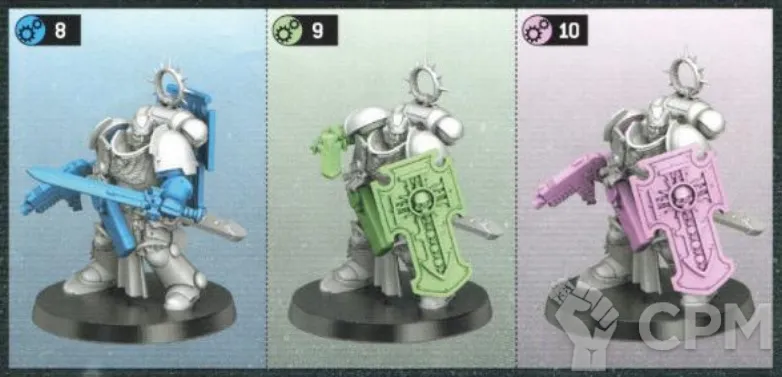 Bladeguard Veterans - 6 шт. Литьё хорошего качества. Набор скомплектован из одного полного набора Bladeguard Veterans х 3 и трех дополнительных тел, что позволяет собрать по два варианта закачек (варианты сборки по инструкции представлены на фото 4, 5 и 6). Каждая фигура упакована в отдельный зип-пакет (фото 3), что облегчает подбор деталей для каждой фигуры. Полная комплектация представлена на фото 2.