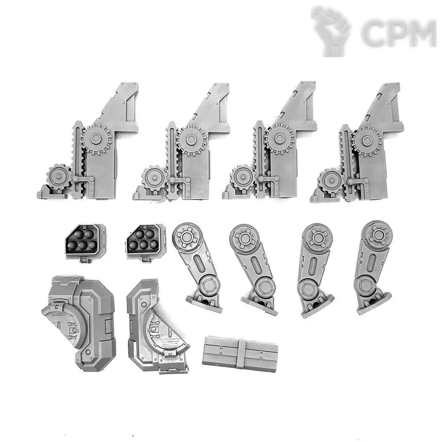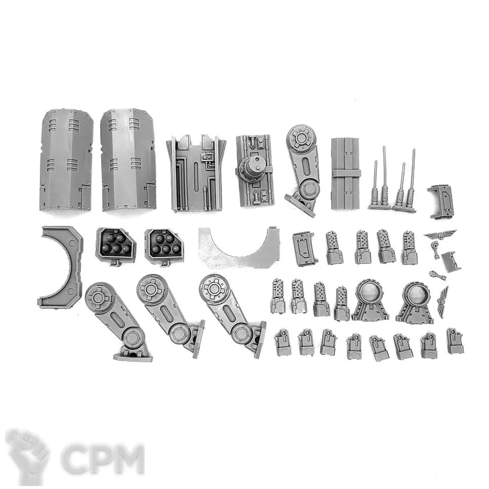 Собакен пришел. На качество литья не буду жаловаться - смола и крупные детали дружат никак. Но недостающие детали - это нехорошо. Точно нет запалов на втором инферно кэнон, нет второй крышки плеча над сервитором, нет одного места крепления силового кабеля к орудию и вызывает подозрения одиночная деталь чьё назначение я пока не нашел.