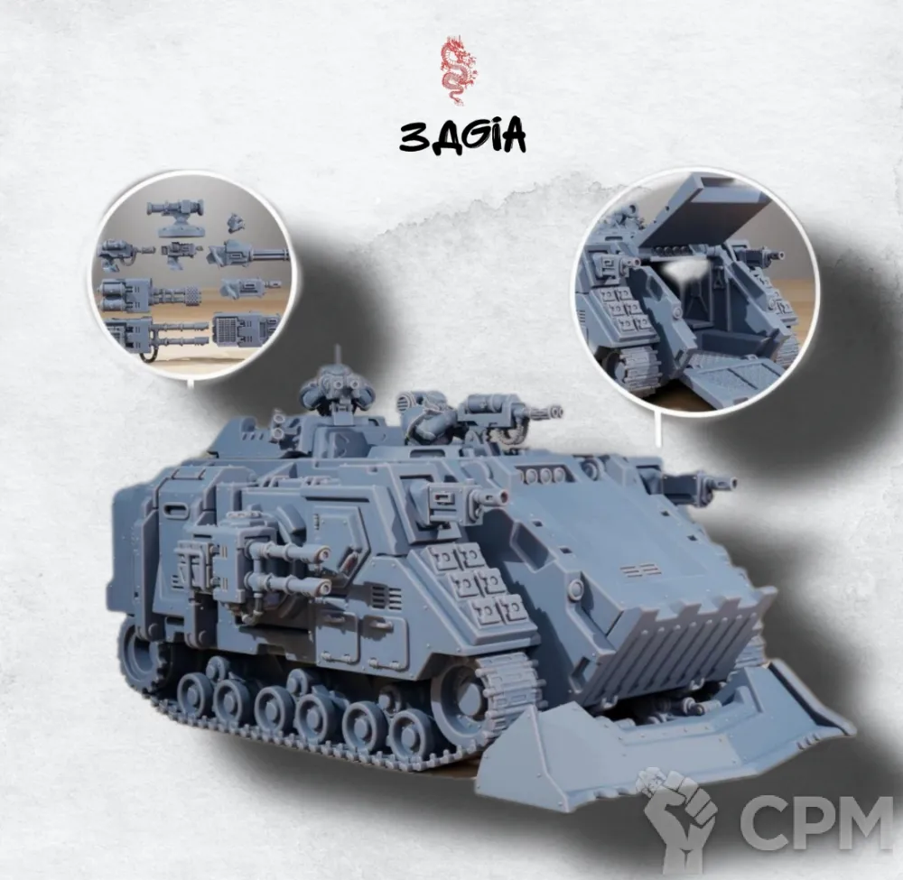 А вот второй грот танк ( https://minifreemarket.com/catalog/games-with-miniatures/warhammer-40000/orks/grot-tank-59123 )это нечто. Гусеницы от верхнего, передняя часть , как я понял, общая. Только задняя часть от нижней модели. И обвес о нижней модели. Если это нижняя модель то где брызговики?