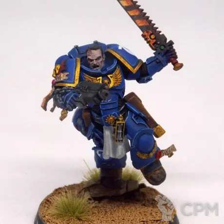 ЛИТОЙ лейтенант Титус. На ноге есть небольшой дефект литья, особо не заметен, если не рассматривать миниатюру детально.