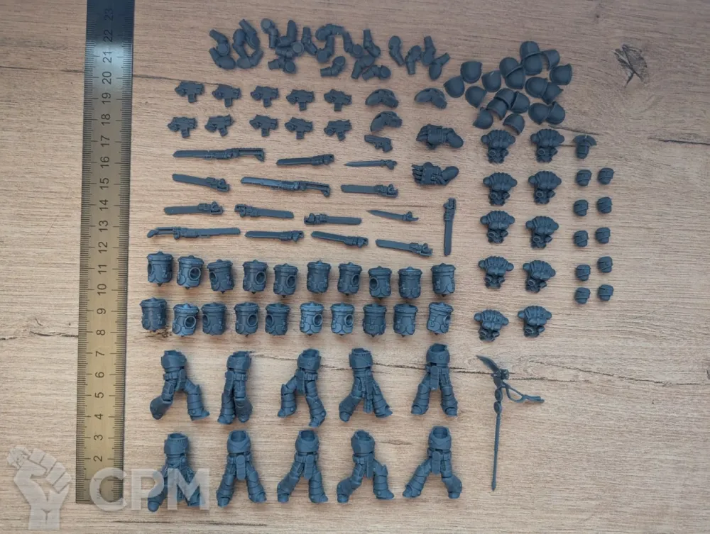 На 10 примарисов ушли в брак 3 меча, 3 болтера, рука без оружия, 1 голова, наплечник и 1 бэкпак. Для аукциона сойдёт, тем более, что брал на конверсию, но сам факт.