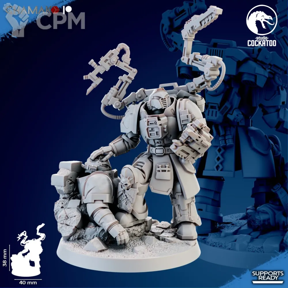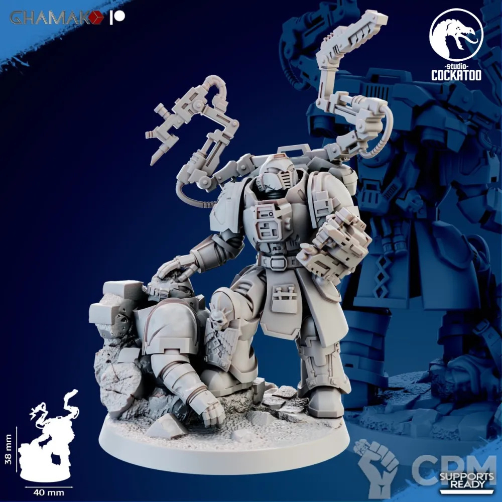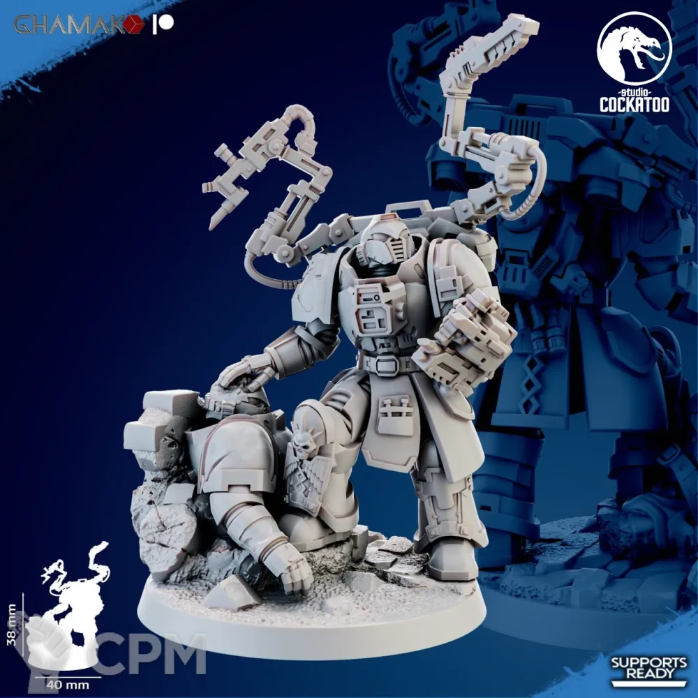 Печать сделана на УРА, всё подстраивается под ваше удобство! За черепа для подставки отдельное спасибо, сорк в терминаторской броне выглядит ещё грознее!