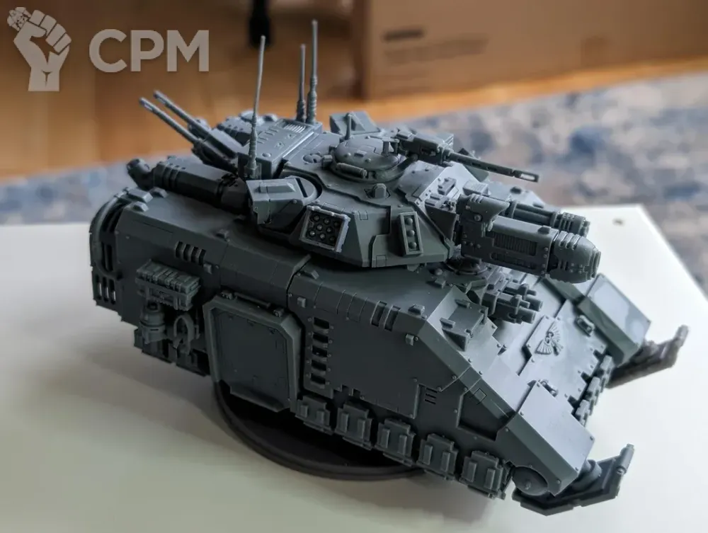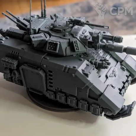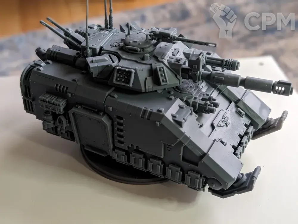 По наполнению...тут вроде всё есть, однако странное дело, обвесов нет, за исключением одного крючка, я точно не знаю, кто в этом виноват, я ли это, из-за того что нужно было сказать об добавлении или сам печатник, что не доложил, таким образом нет шипов, цепей, крюков и люков на корпус, благо у меня все это нашлось из личных запасов. Далее сами детали, а именно спонсоны, на стержне, на котором держится бортовое вооружение, не имеет выпуклой части, за который бы держался болтер или пушка, при сборке, так что приклеил намертво к стержню, держится хорошо. В остальном, я доволен качеством товара, есть огрехи, но они минимальны и для опытного сборщика проблемы эти вовсе и не проблемы.
