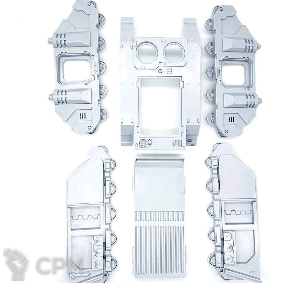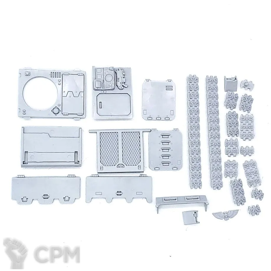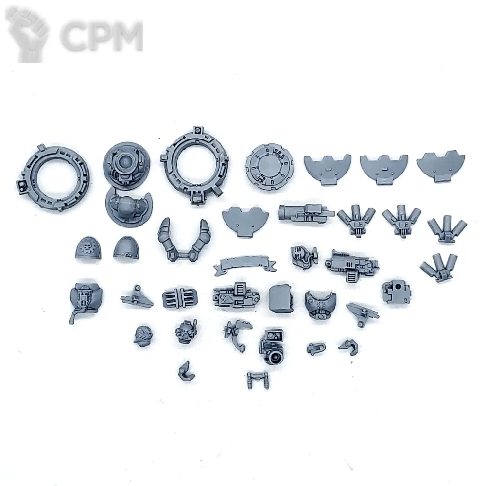 Собакен пришел. На качество литья не буду жаловаться - смола и крупные детали дружат никак. Но недостающие детали - это нехорошо. Точно нет запалов на втором инферно кэнон, нет второй крышки плеча над сервитором, нет одного места крепления силового кабеля к орудию и вызывает подозрения одиночная деталь чьё назначение я пока не нашел.