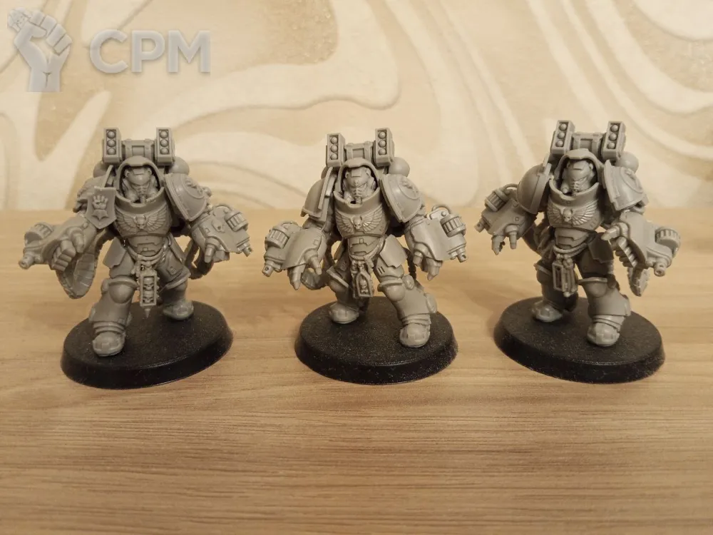 3 литых агрессора хорошего качества, закачаны в болтеры, наплечники имперских кулаков