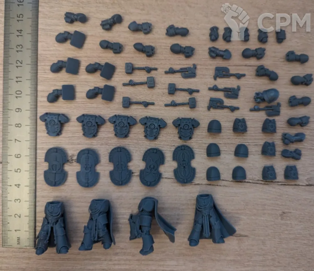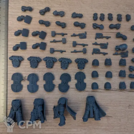 На 10 примарисов ушли в брак 3 меча, 3 болтера, рука без оружия, 1 голова, наплечник и 1 бэкпак. Для аукциона сойдёт, тем более, что брал на конверсию, но сам факт.